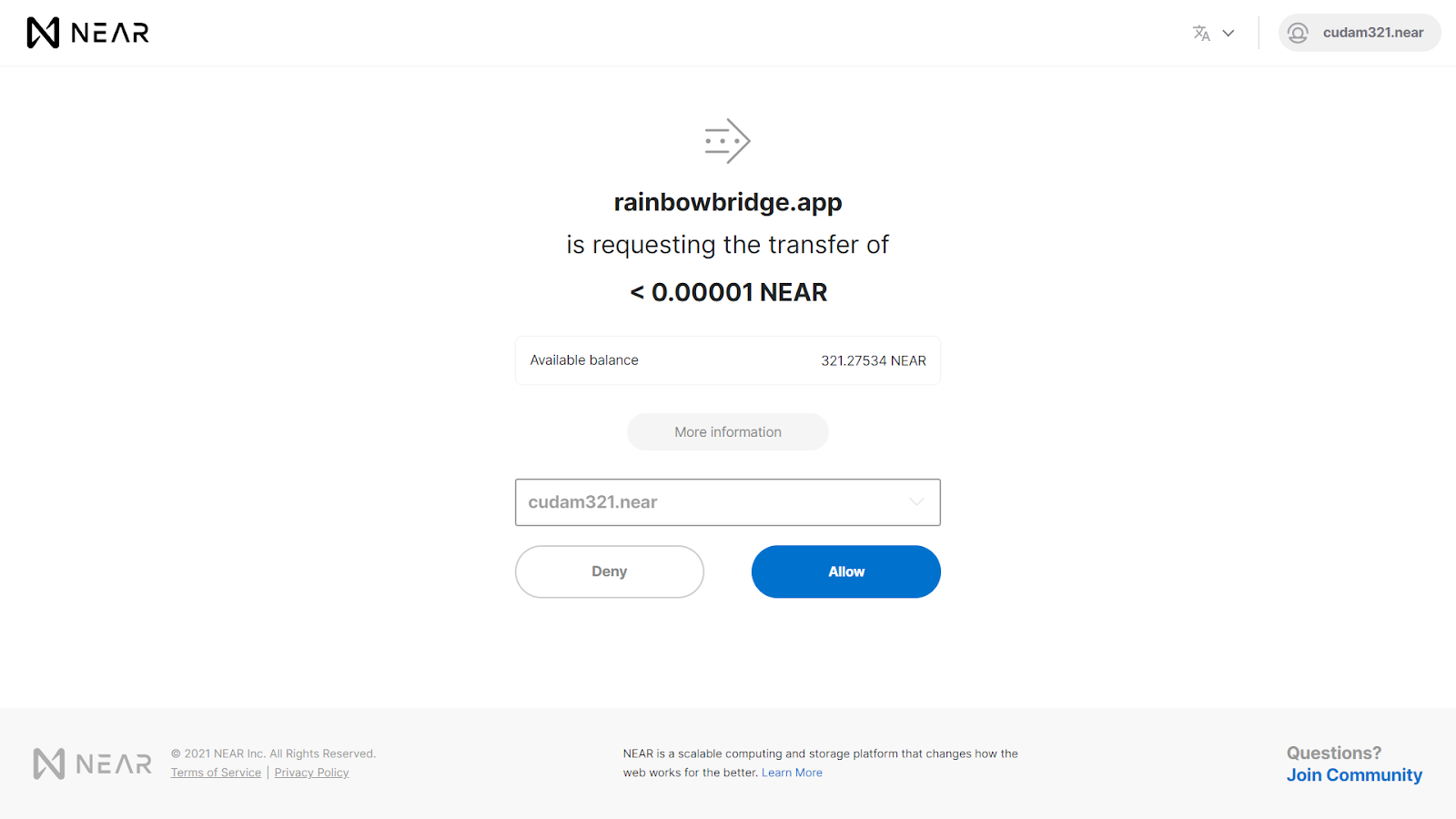 4.You’ll be redirected to your Near Wallet to confirm the transaction. Hit Allow